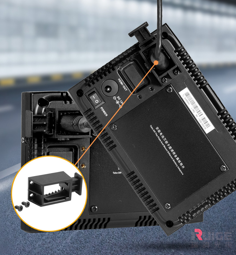 支持HDMI信号输入接口,搭配创新的HDMI防脱锁设计,利用鳄鱼嘴夹紧原理,有效避免HDMI线松动或脱落,导致信号源断开,影响画面监看。