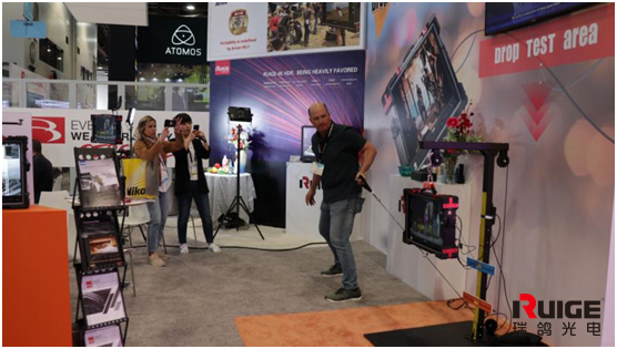 可监视器、尤其是价格不菲的专业级监视器,毕竟是精密仪器,50cm的跌落高度,包括专业人士在内,是从未见过的。起初是由我们的外贸人员演示给他们看。同时,也邀请参观者参与体验。