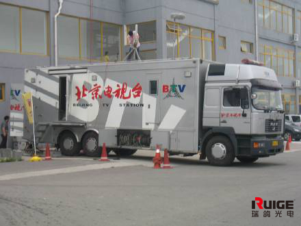 照片中,我们看到的是北京电视台的高清转播车,为了对转播车内的监视器进行颜色校准,北京电视台特地邀请瑞鸽公司到现场进行监视器设备的色彩校准指导,并对颜色管理相关知识进行现场讲解。
