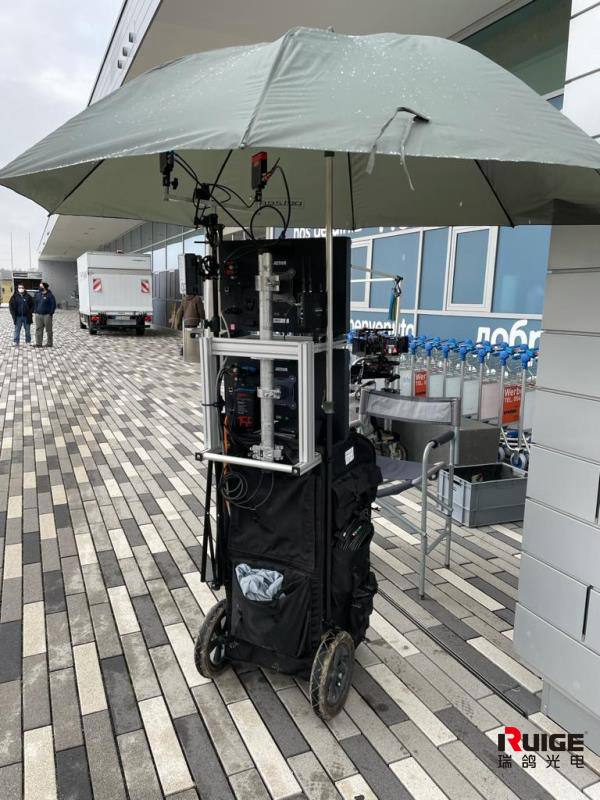 你以为这样就完了吗?当在户外拍摄遇到雨雪等恶劣天气,拍摄车上居然还可以安装超大雨伞进行防护,真的是太完美了。