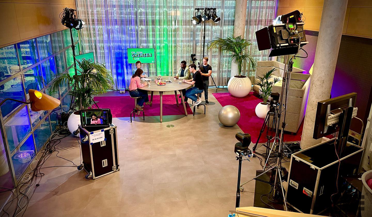 走进直播间,可以看到现场采用开放式布局设计,主持人和被邀请嘉宾围坐在圆桌前进行沟通谈话。