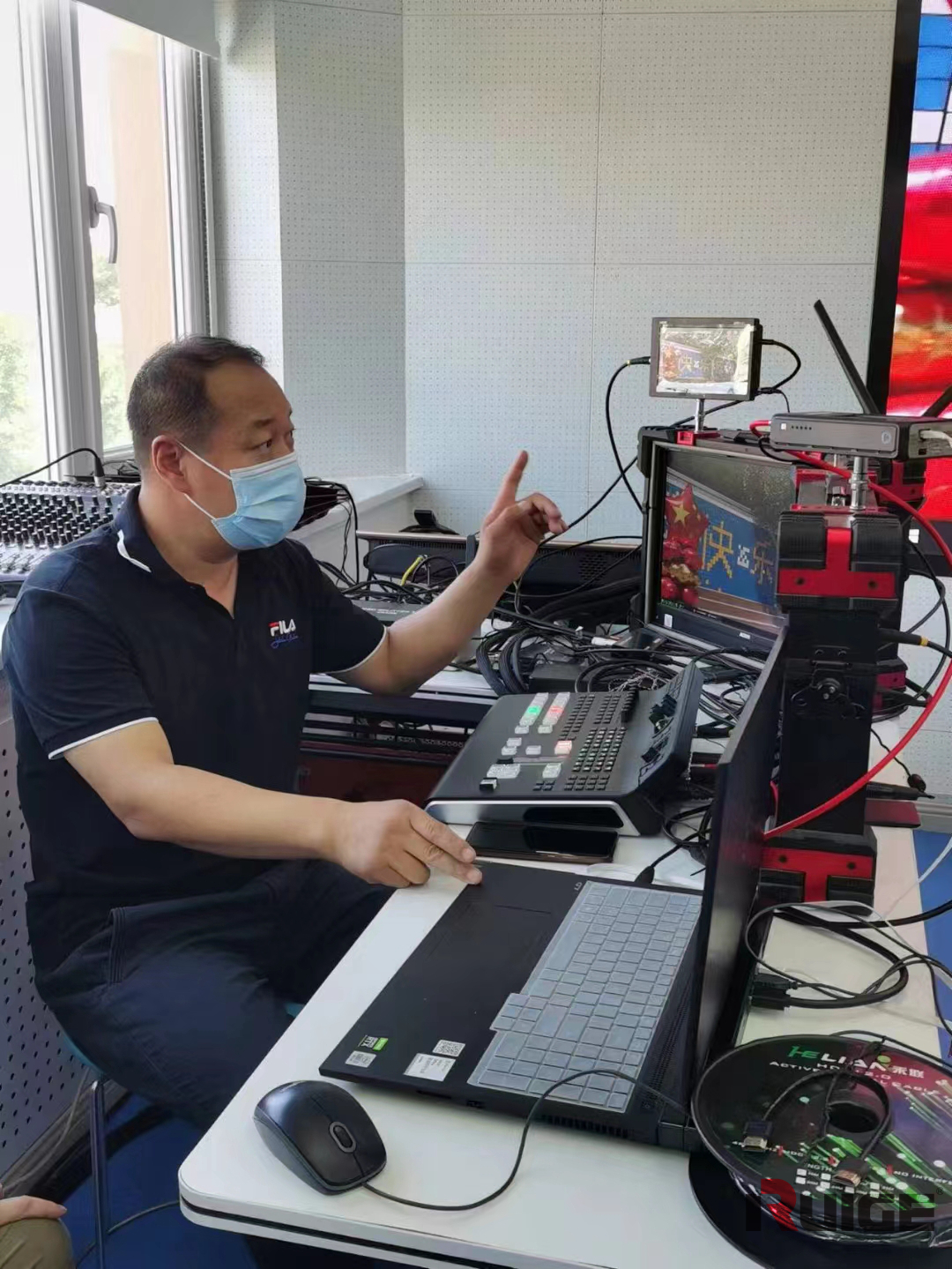 现场的拍摄人员已经将设备安装调试到位,开始取景拍摄。虽然只是给小学生拍摄,但是拍摄团队也没有丝毫马虎。选用了非常专业的拍摄器材。包括铠甲一号监视器、机头小监、无线图传、HDMI分屏器、导播台、音频调音切换台等等。