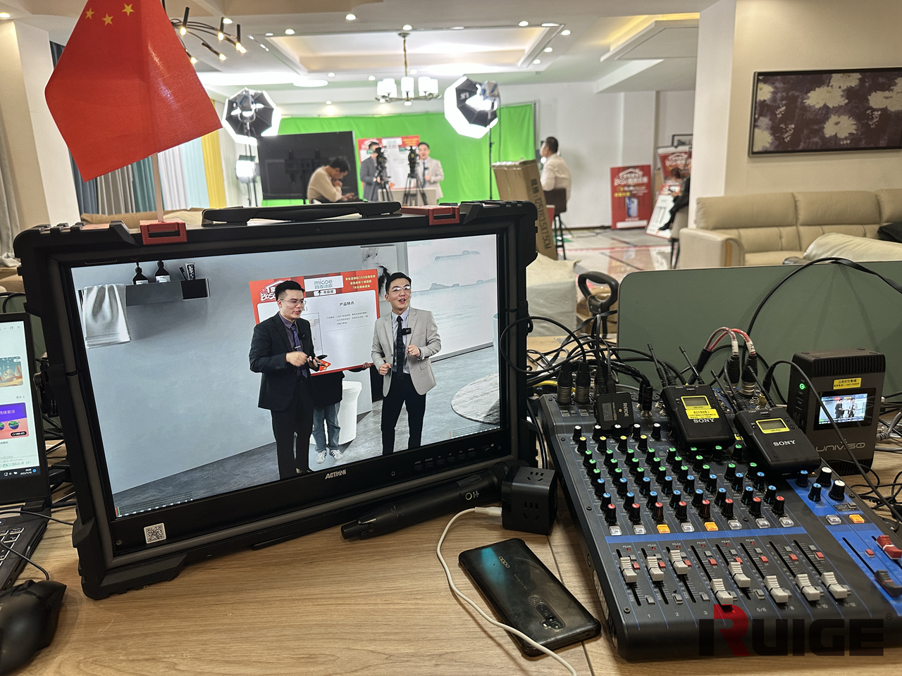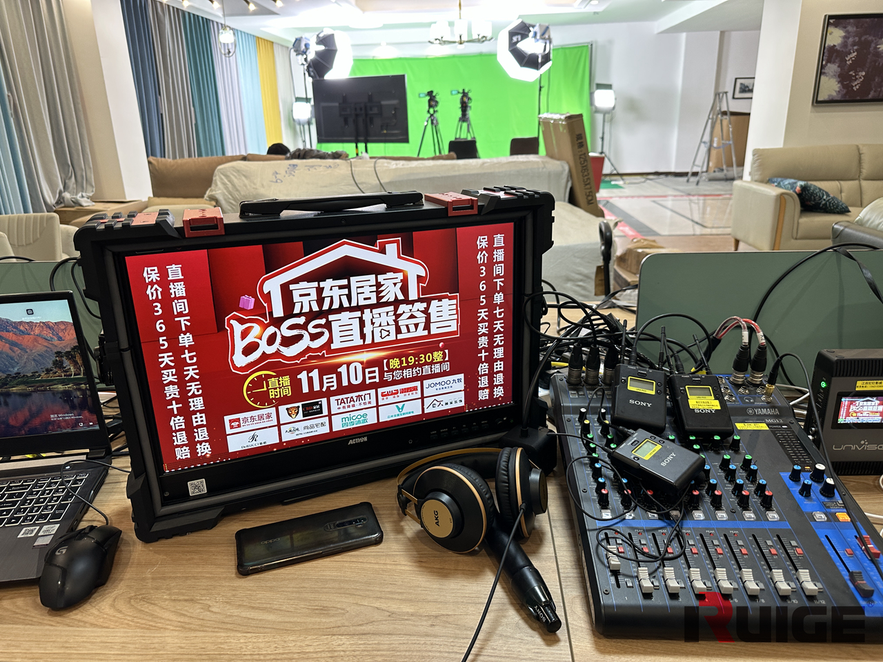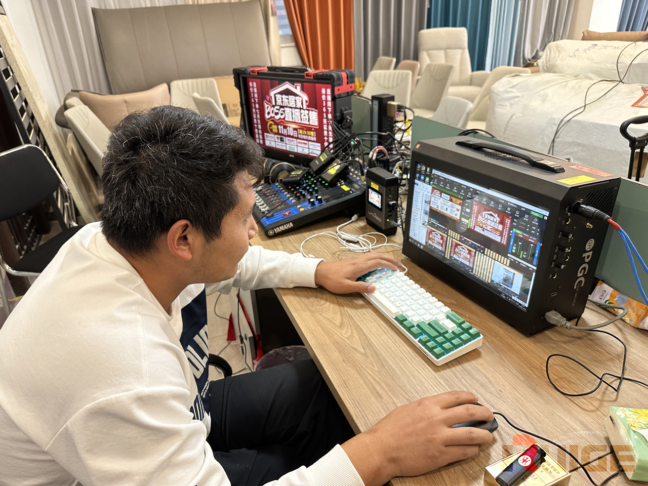 主播和厂商代表专注于给消费者输出专业的产品知识和卖点促成下单,而导演借助大尺寸的铠甲一号监视器监看直播画面,操作直播服务器配合直播,效果非常棒。专业的设备配合专业的团队,难怪家居直播可以逆势增长,C位出道。