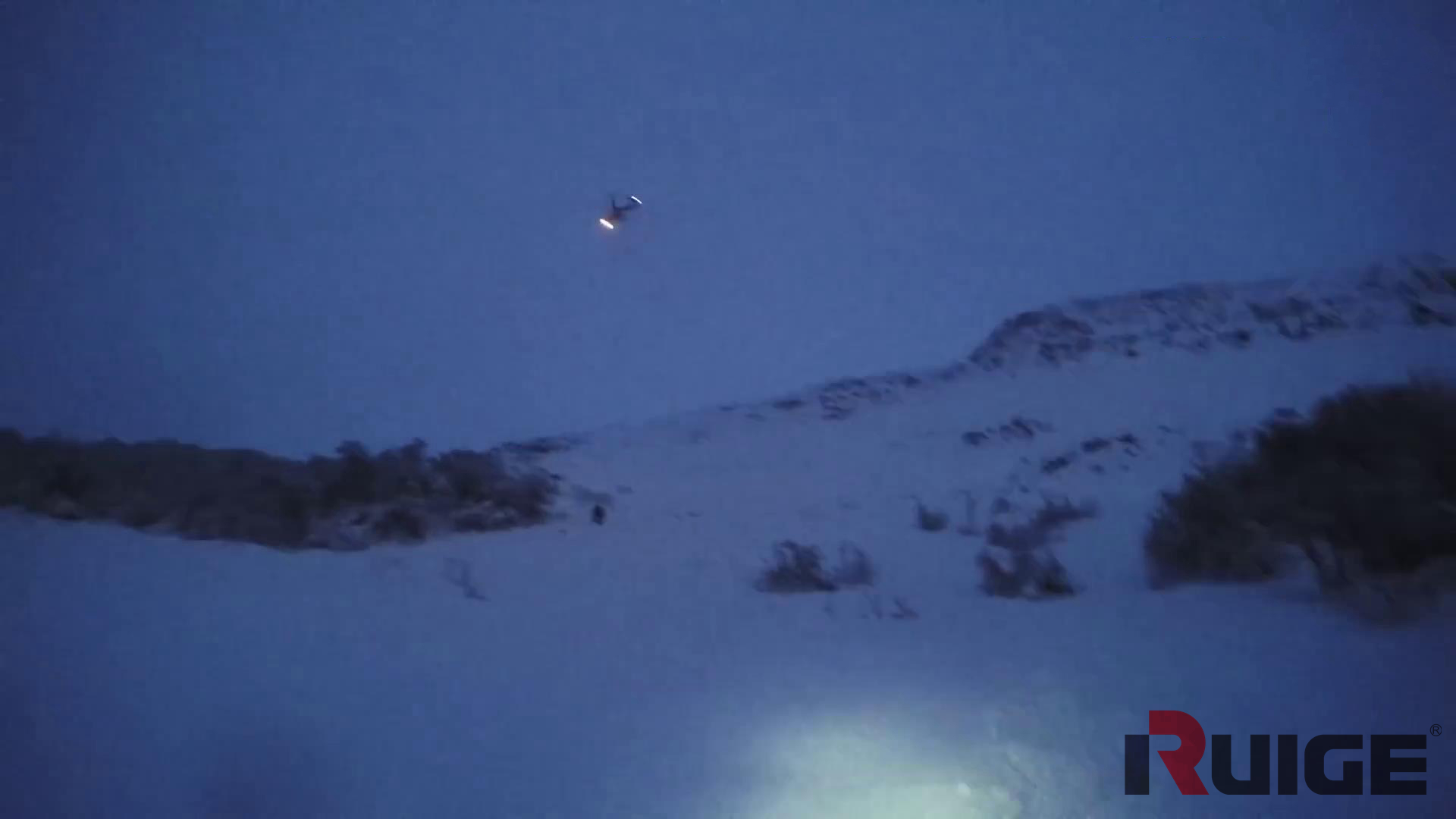 因为积雪很深道路难行,救援队来到事发地点已经天黑,为了能尽快解救被困人员,出动了直升机进行航拍搜寻。