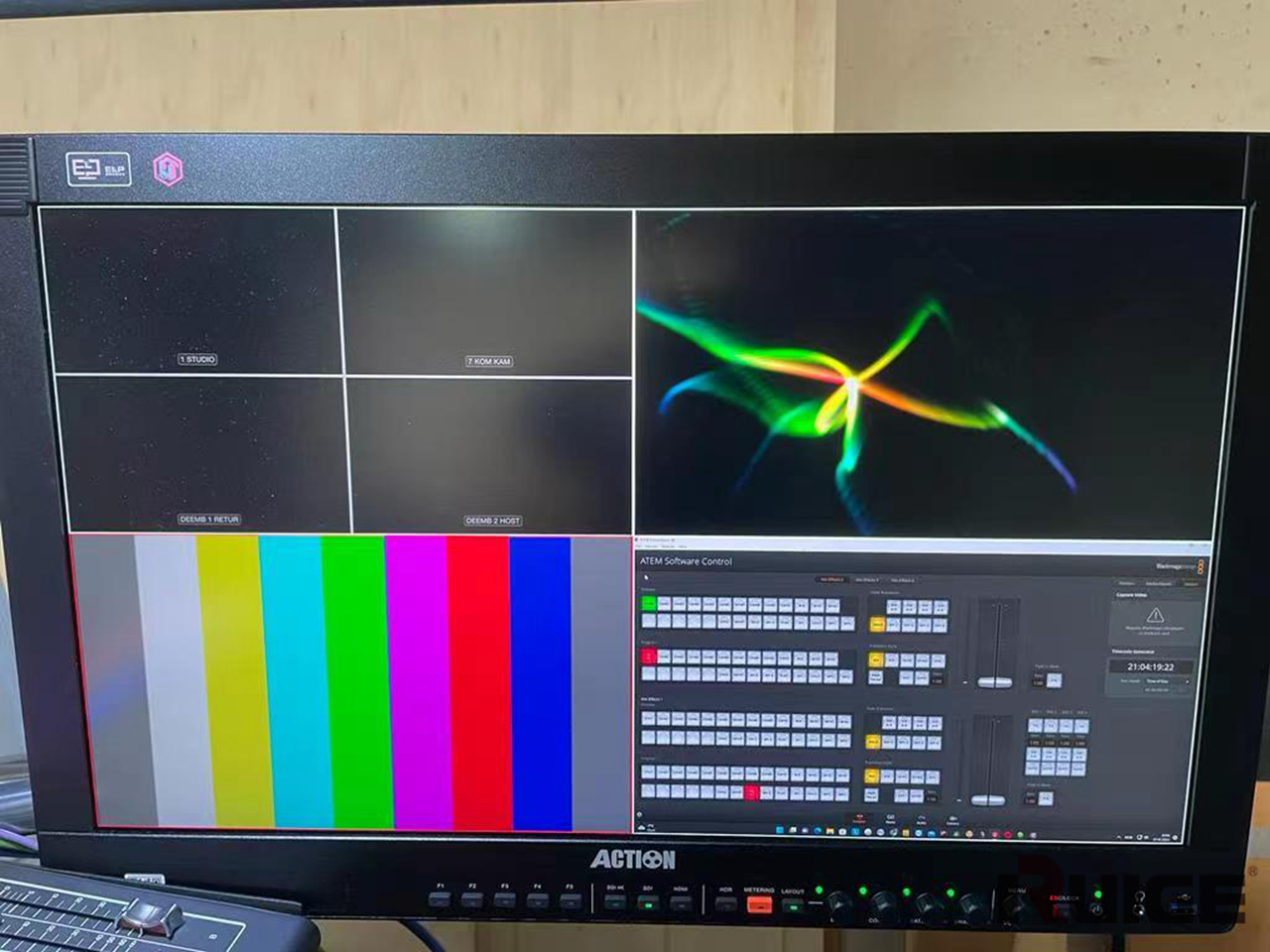 核心的视频系统配备了ATEM多功能切换台、16路数字调音台、数字录像机、瑞鸽4K HDR监视器等诸多设备。
