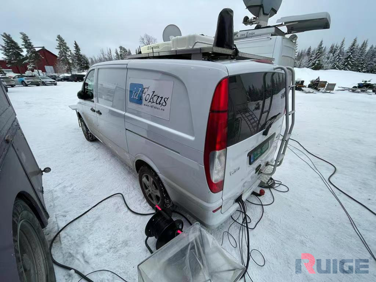 从外表看,这只不过是一辆普通的七座商务车。在车顶部安装了微波天线,用于视频信号的传输。
