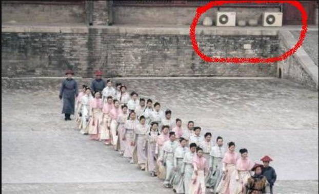 这张图片是被吐槽最多的,从服饰、场景上来看,这明显是一部古装剧,而且是一部清朝的戏,难道说清朝这么先进,已经提前发明空调了?