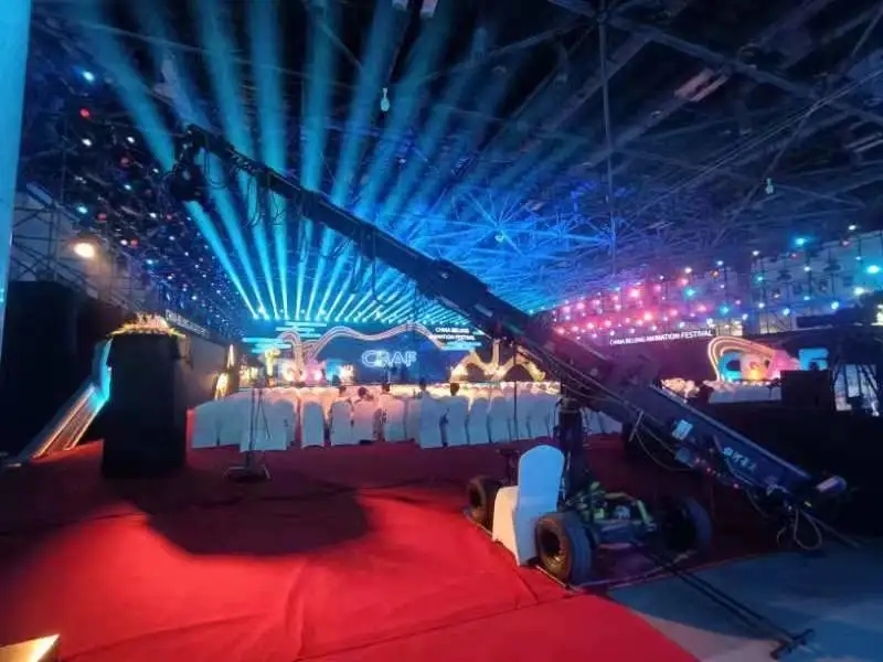首先在会场前后都布置了大型的摇臂设备,有助于增加画面的纵深和动感,展现场景的全貌和细节。