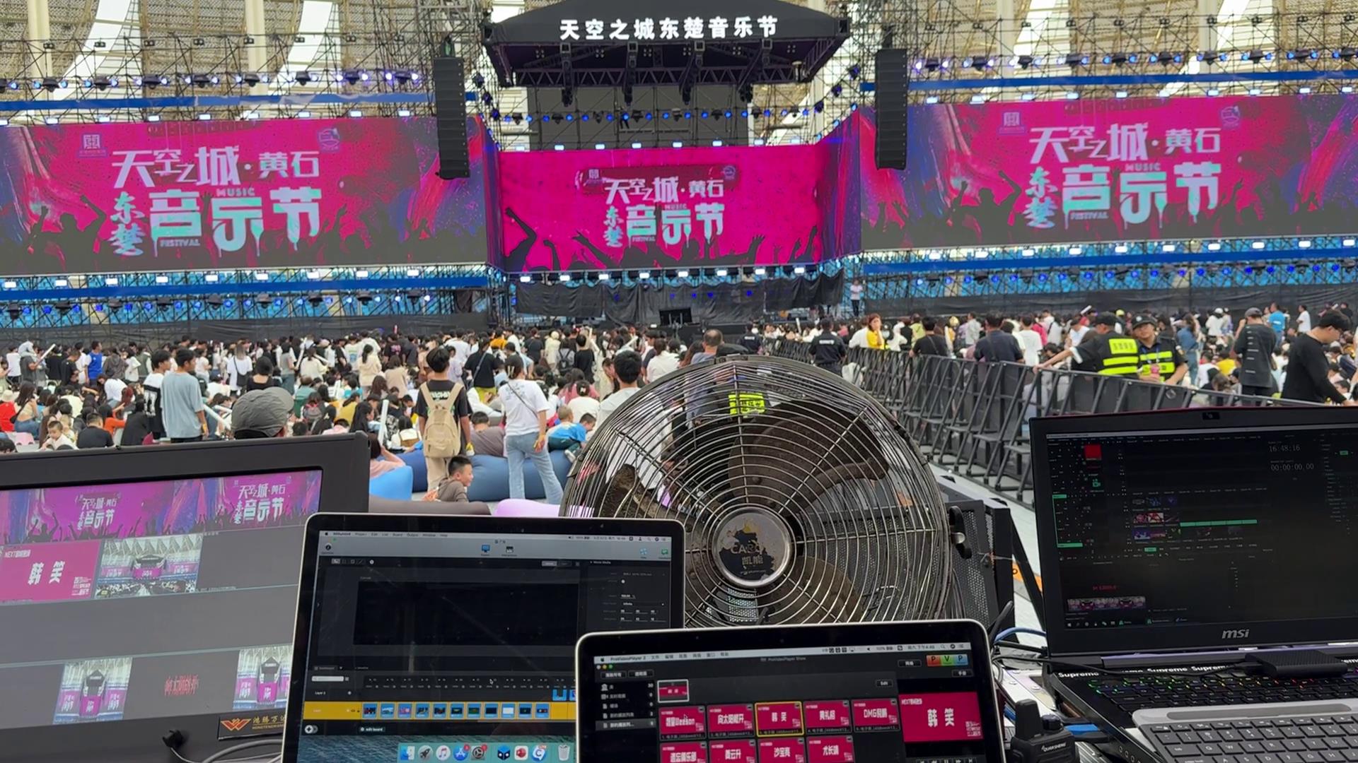 为了记录下这场音乐盛宴的每一个瞬间,主办方特地安排了强大的拍摄组,布置了五个拍摄机位,确保无死角。而现场的导演选用了铠甲三号双联监视器做为现场主监,它的双屏功能让导演可以一边查看技术波形,一边观看摄像机的实时画面,确保每一个画面的完美呈现。这样的便捷性、高效性,让它成为音乐节现场不可或缺的“眼睛”。