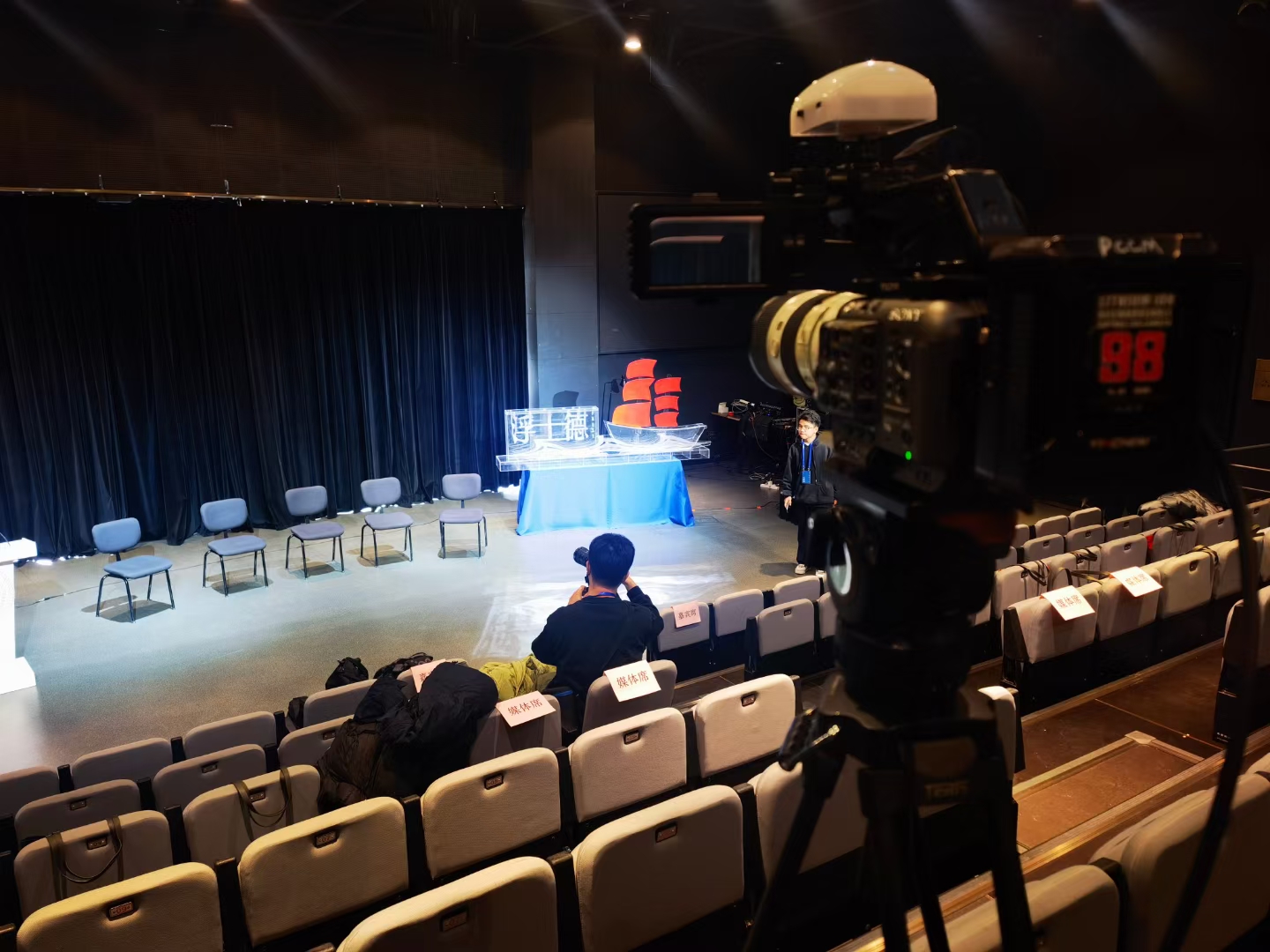 终于,在发布会的当天。嘉宾们的现场采访、演员们的精彩表演,导演在监视器的帮助下,完美地将现场的每一个精彩记录下来。当最后一幕落下,整个剧场响起了雷鸣般的掌声。那一刻,大家知道,所有的努力都是值得的。