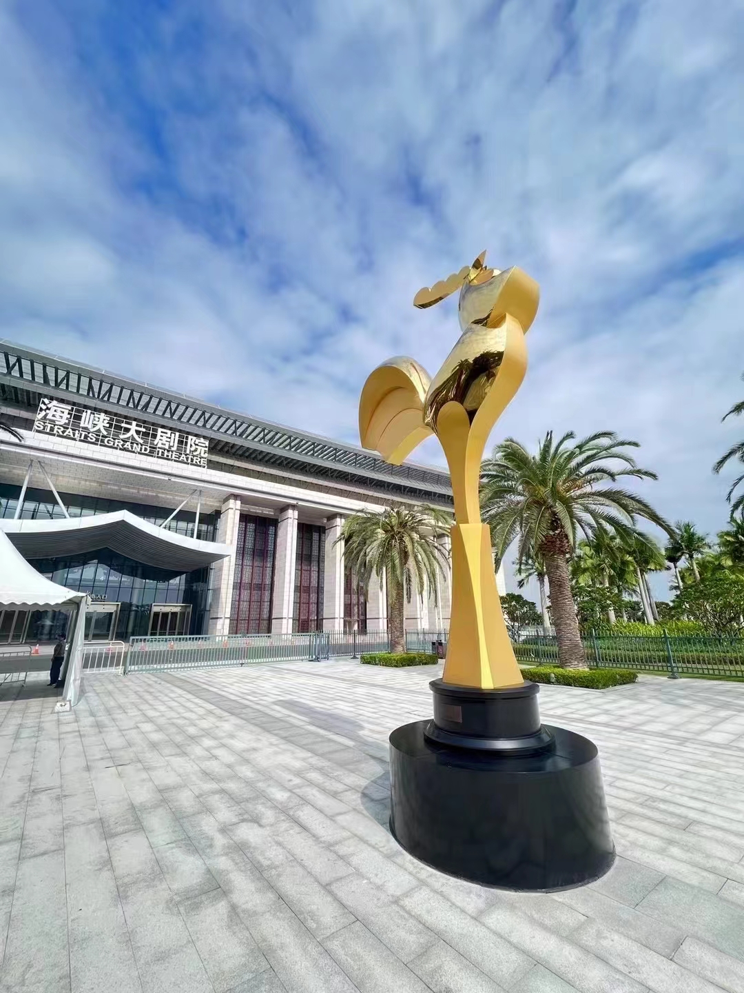 厦门海峡大剧院门前,一座金鸡雕塑静静伫立,金光闪闪,仿佛在预示着一场梦想与荣誉的盛会即将开幕。这座雕塑不仅是第36届中国电影金鸡奖的象征,更像是一道通往电影世界的神秘之门。它吸引着行人的目光,也激发着每一个电影人内心的激情与梦想。