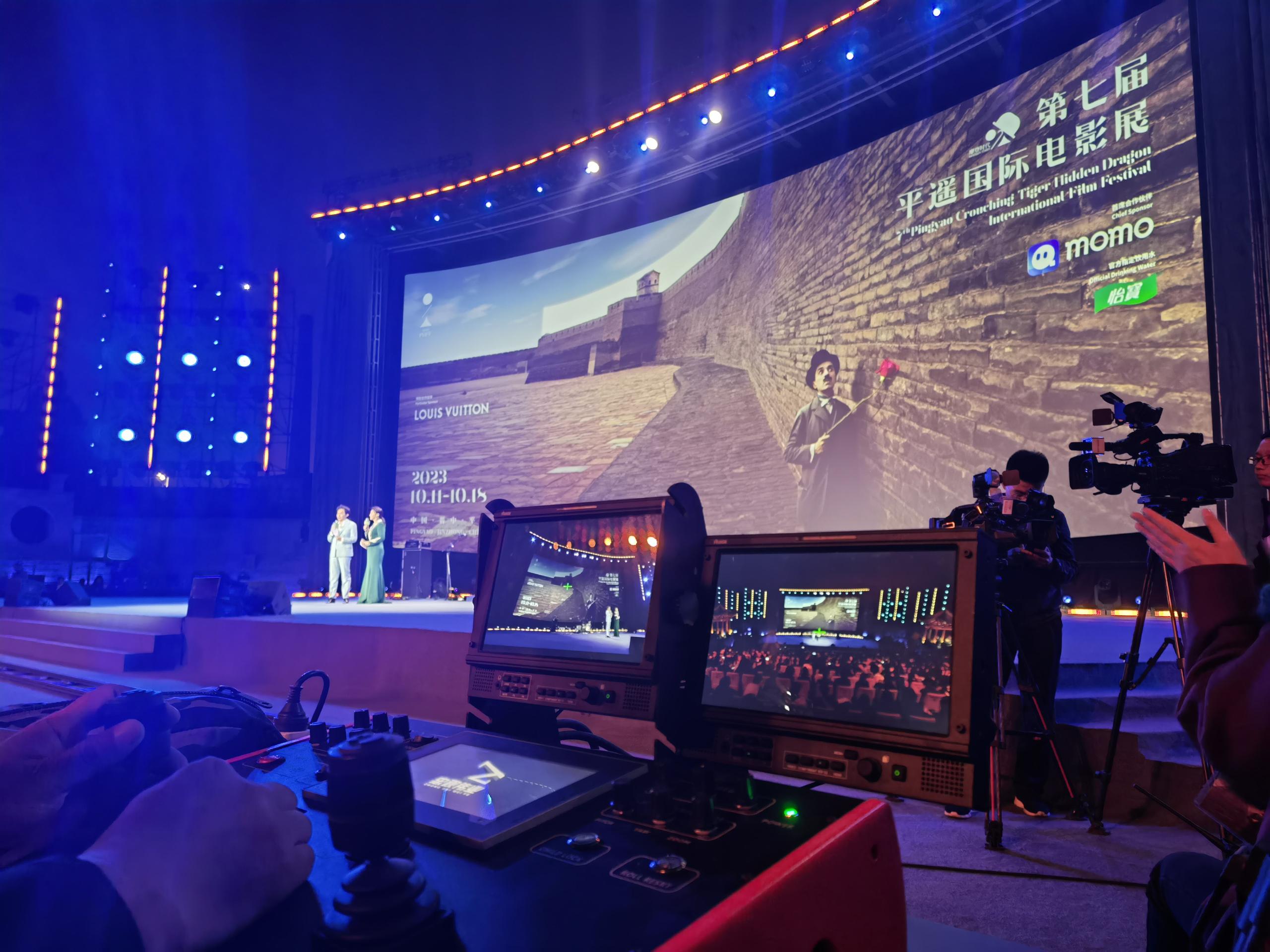这时,位于舞台两侧的瑞鸽监视器就发挥了它的作用。在电轨系统的精准控制下,监视器提供了实时的画面反馈,确保摄影师可以准确捕捉到每一个精彩瞬间。它们配合默契,保证了整场电影展的直播视觉呈现。