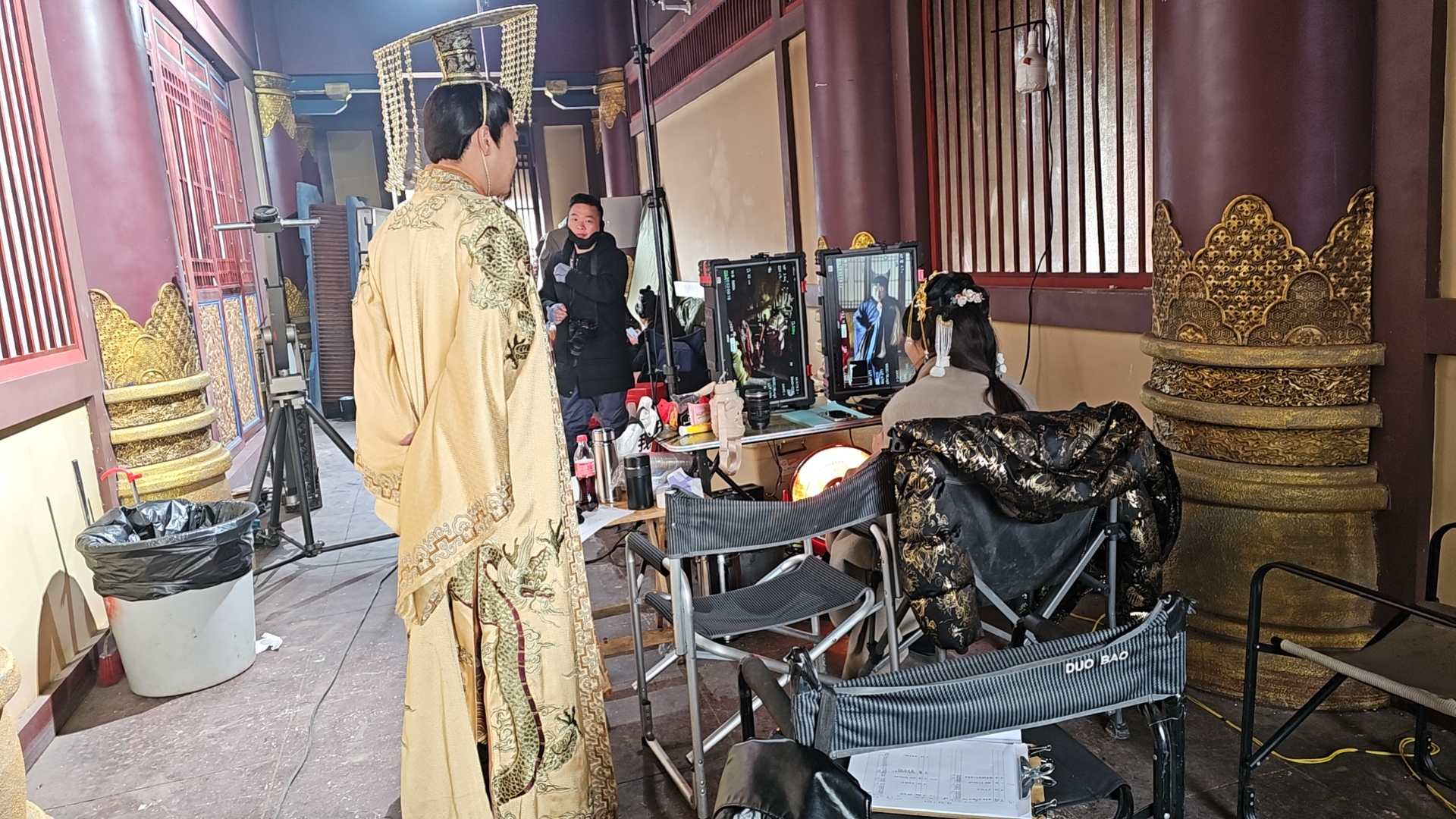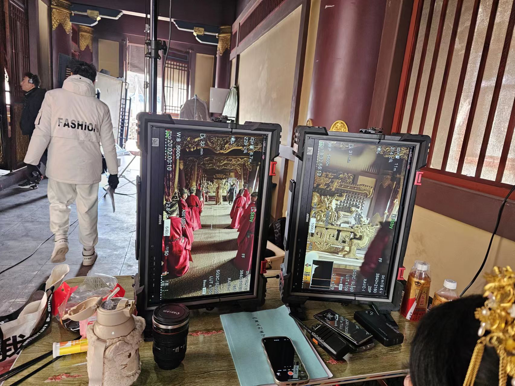 在浸润着古风气息的影视剧拍摄现场,随着导演一声“开机”,演员们开始投入到另一个时空尽管场景中的一切看似传统,但现场用于监控拍摄画面的是两台竖屏监视器。