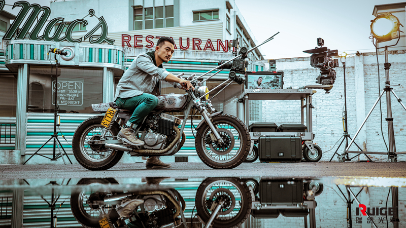 画面转换,那位骑在摩托车上的男子,他的目光专注而远方,仿佛在寻找着灵感。