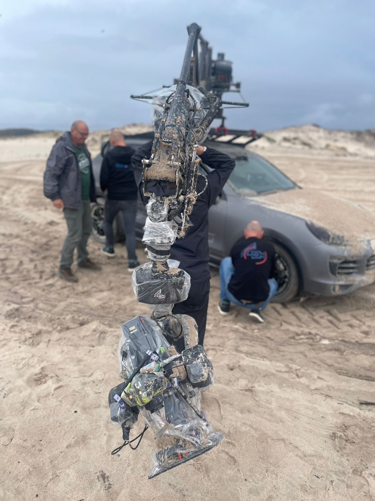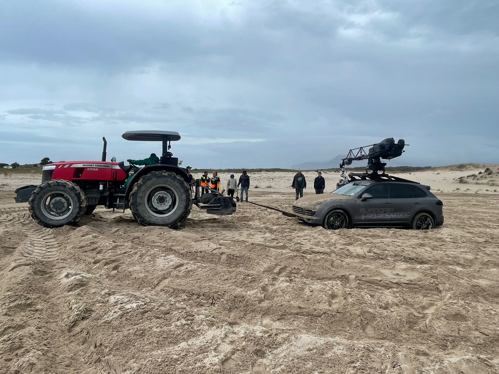 在一片沙尘飞扬的沙地中,一辆装备精良的拍摄车陷入困境,正在被一台拖拉机缓缓拖出。这不是电影中的一幕,而是保时捷全电动跑车Taycan广告拍摄现场的真实场景。沙地的无情考验着每一件设备,也考验着制作团队的应变能力。