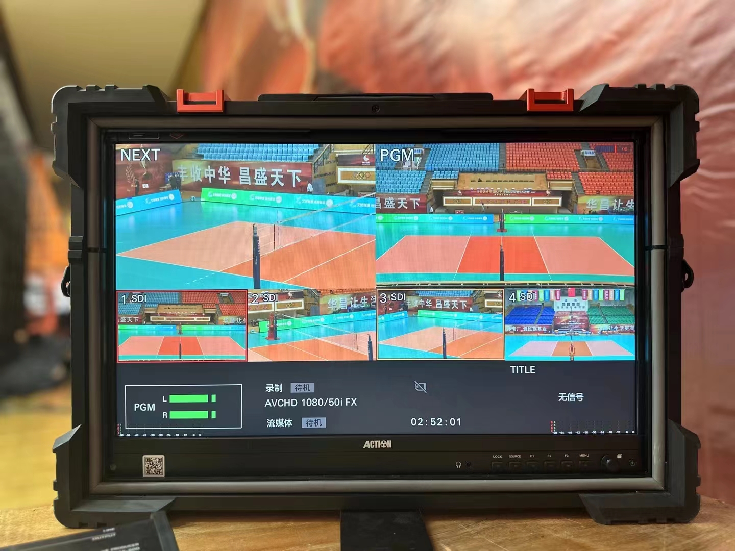 在体育馆的一角,导播正紧张地通过监视器监看着多机位传送的实时画面。高清摄像机捕捉着运动员的每一个动作,将这些精彩瞬间实时传递给全国乃至全世界的观众。
