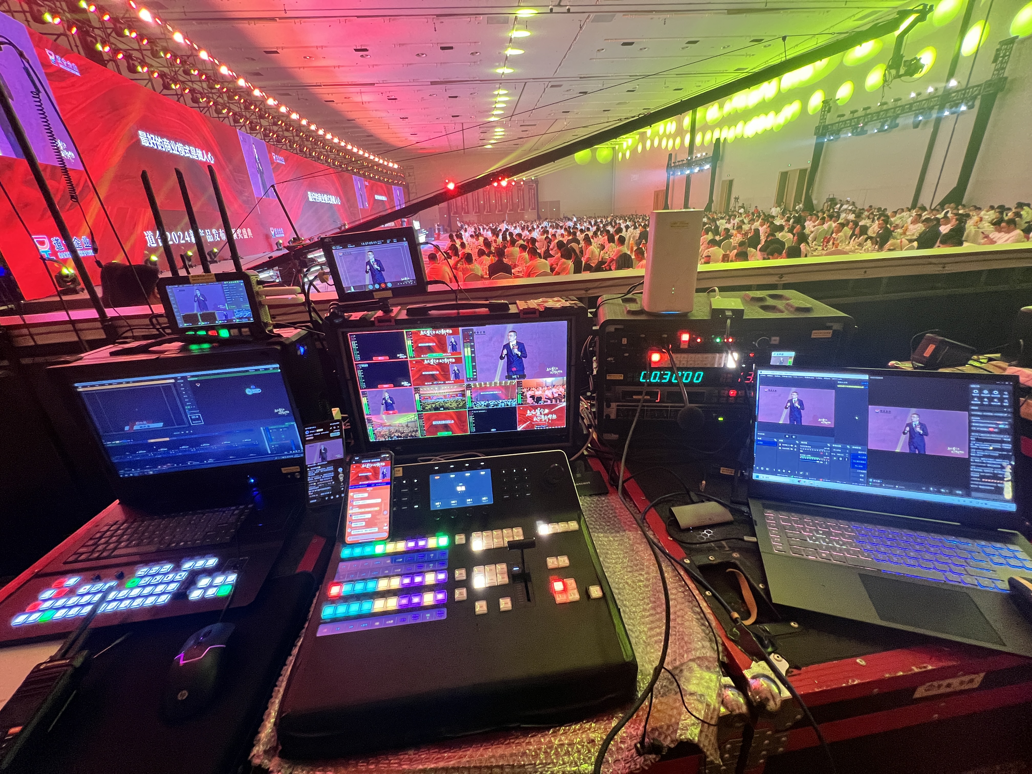 此外,强大的技术支持确保了发布会的顺利进行。道合企业通过多台监视器和实时控制设备,对现场进行全面监看和管理,确保活动万无一失。