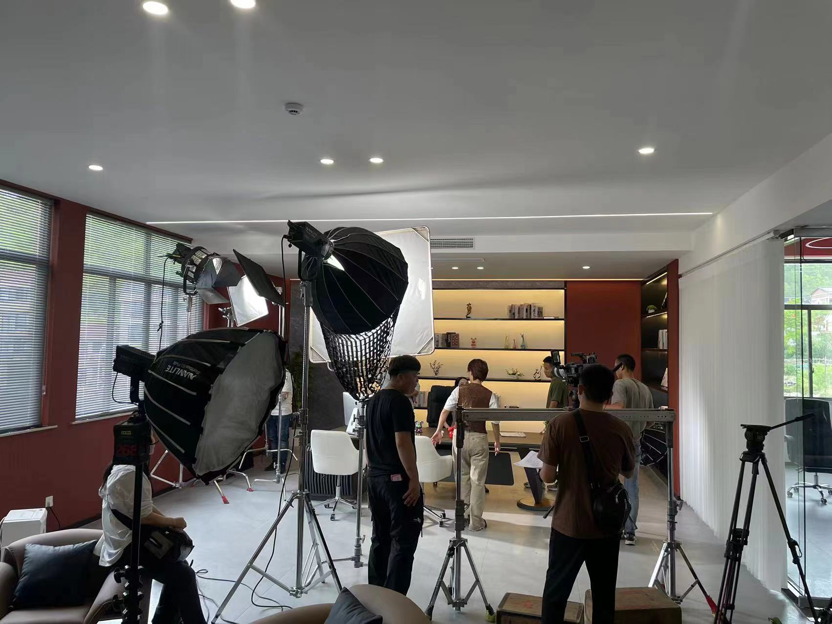 在一个豪华的室内拍摄场景中,布光师利用窗外的自然光作为主光,再配合室内的人工光源进行补光。通过一键测光功能,布光师能够快速检测到各个区域的曝光情况,并通过调整灯光位置和强度,迅速纠正曝光过度和曝光不足的问题,确保画面光线达到最佳效果。