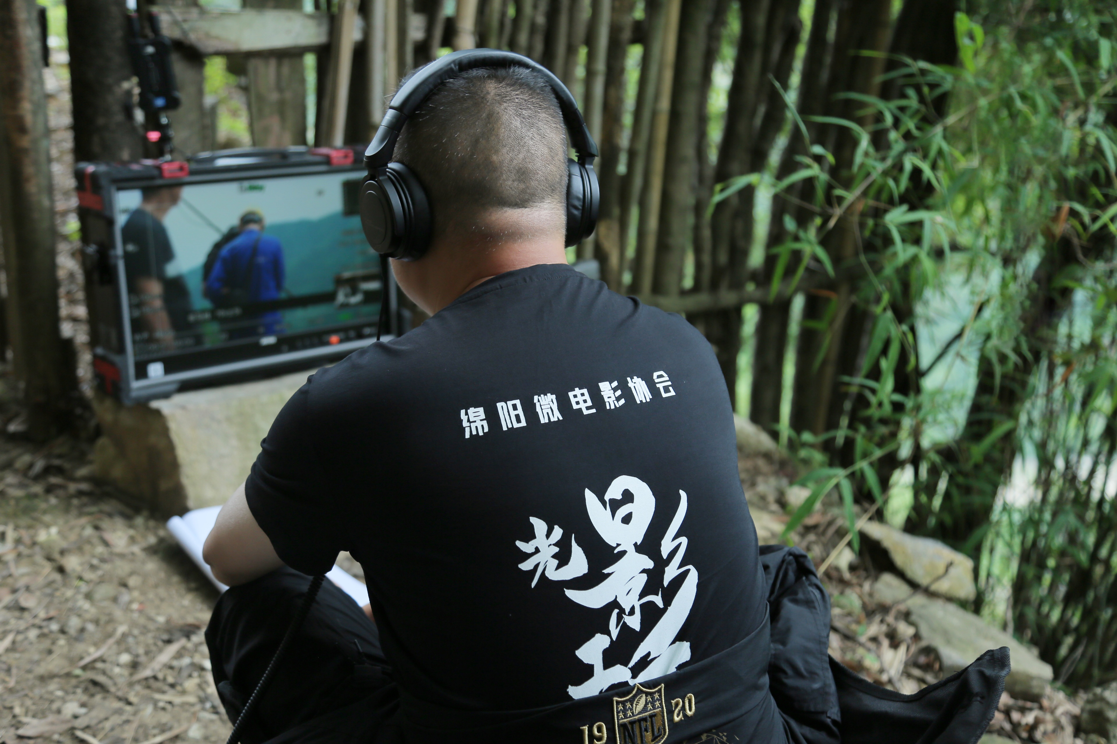 随着拍摄的深入,团队来到到更密集的森林中。在这里,密集的树林、崎岖的山路给拍摄带来了不少挑战。然而,铠甲一号坚固的外衣、便携的机身让这一切变得轻松应对。我们看到监视器被稳固地放置在一块石头上,导演正通过监视器来监看现场的布置情况。