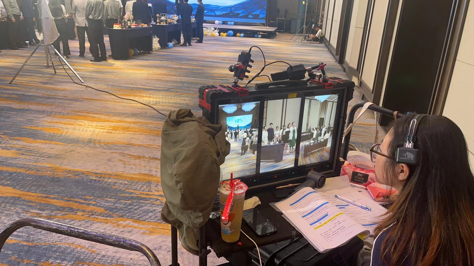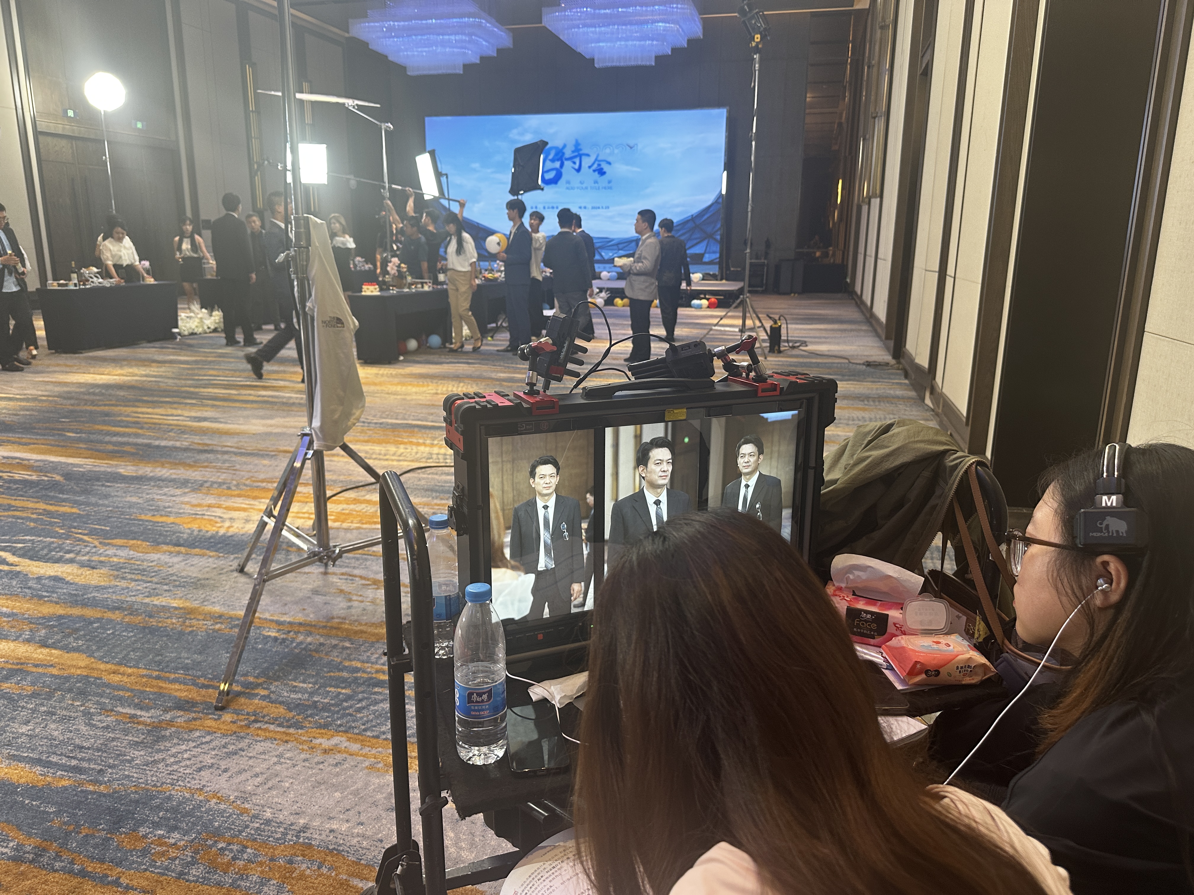 这个监视器并不普通,它由三块竖屏组成,可以独立显示三路摄像机的实时画面。左边的屏幕呈现了全景镜头,捕捉到场景的整体布局;中间屏幕聚焦在主角的面部表情上,紧张、愤怒、复杂的情绪一一呈现;右边的屏幕则展示了对手戏演员的反应,通过不同角度的镜头切换,观众将能够感受到人物间情感的张力。