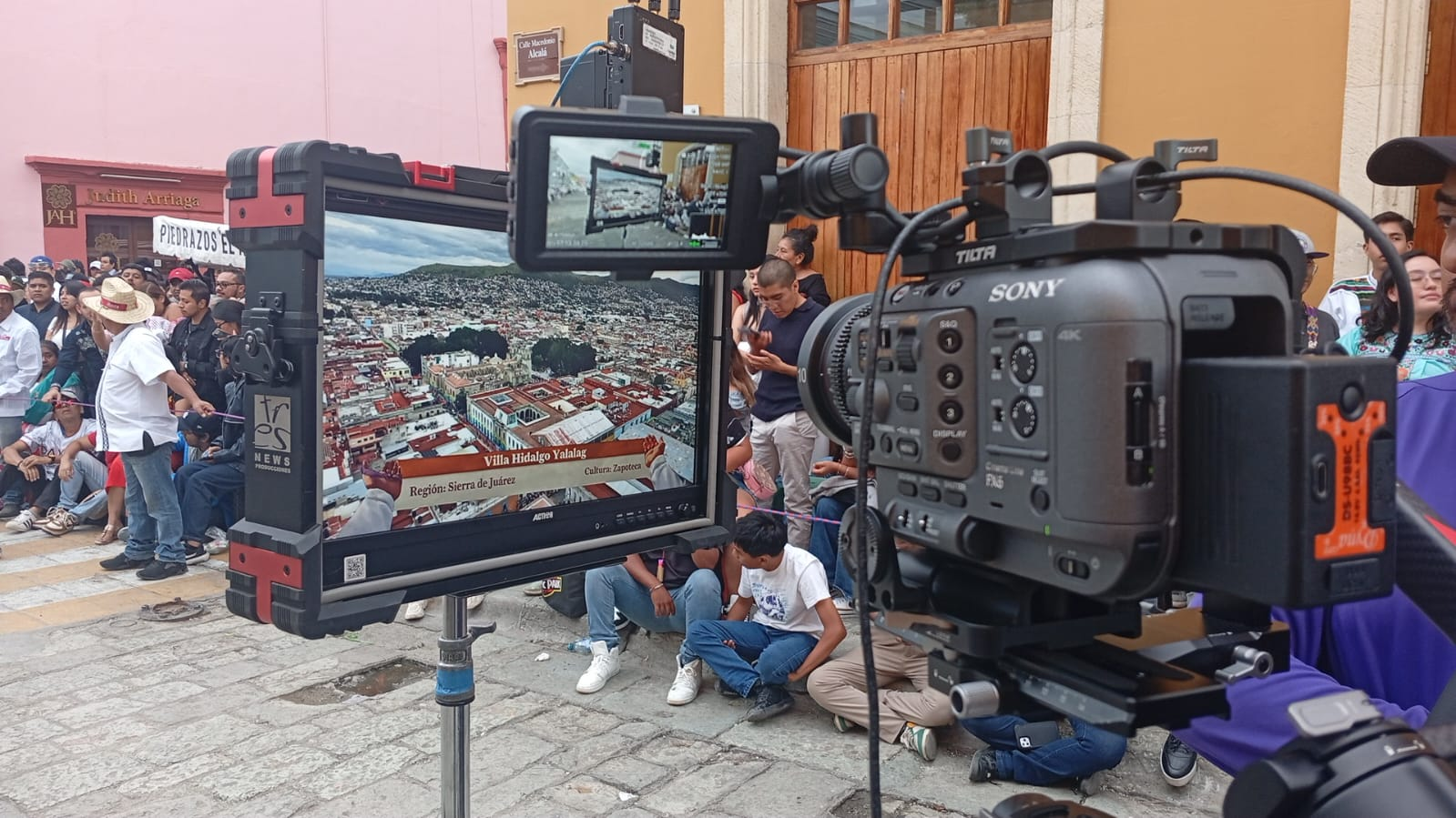 监视器里,萨波特克族聚居的山城被云雾环抱,红瓦屋顶如积木般铺满山谷,字幕 “锡耶拉・华雷斯地区,萨波特克文化” 提醒着观众:这里保存着美洲最古老的原住民文字系统。