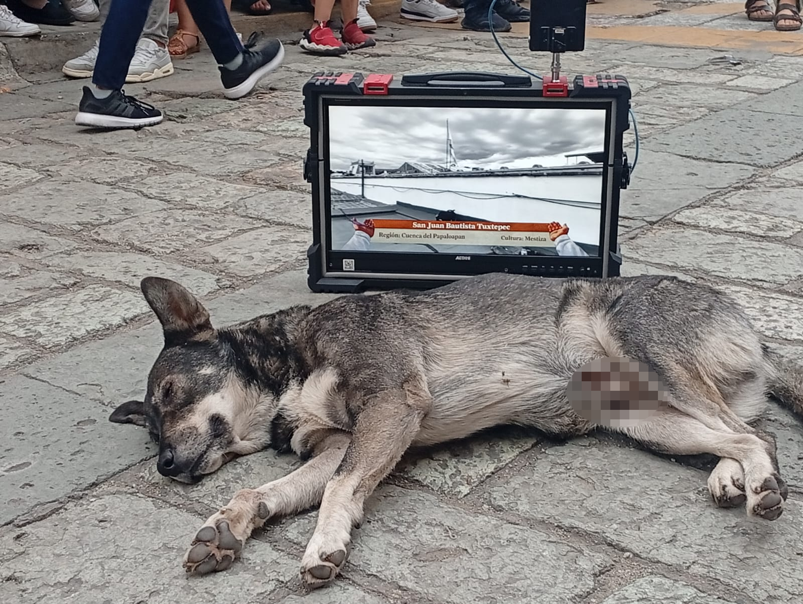 拍摄现场最火的 “明星”,不是身着蓝裙、站在古老教堂前的主持人,而是那只四仰八叉的流浪狗。它就躺在监视器旁,任凭镜头扫过、工作人员走动,只顾把肚皮贴在发烫的石板上降温。