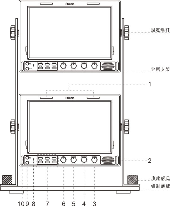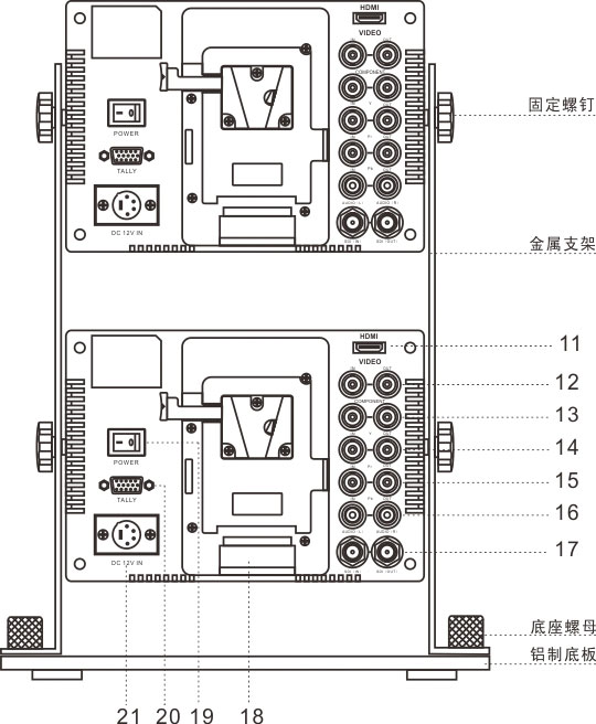 根据拍摄的需要,对监视器的亮度、对比度、饱和度、色温等参数进行调试,确认后并予以保持,以保证整个拍摄过程中画面的灰度和色彩还原信号的一致性。如果面板上的功能键不能锁定,很有可能产生误操作,造成不良的拍摄结果。