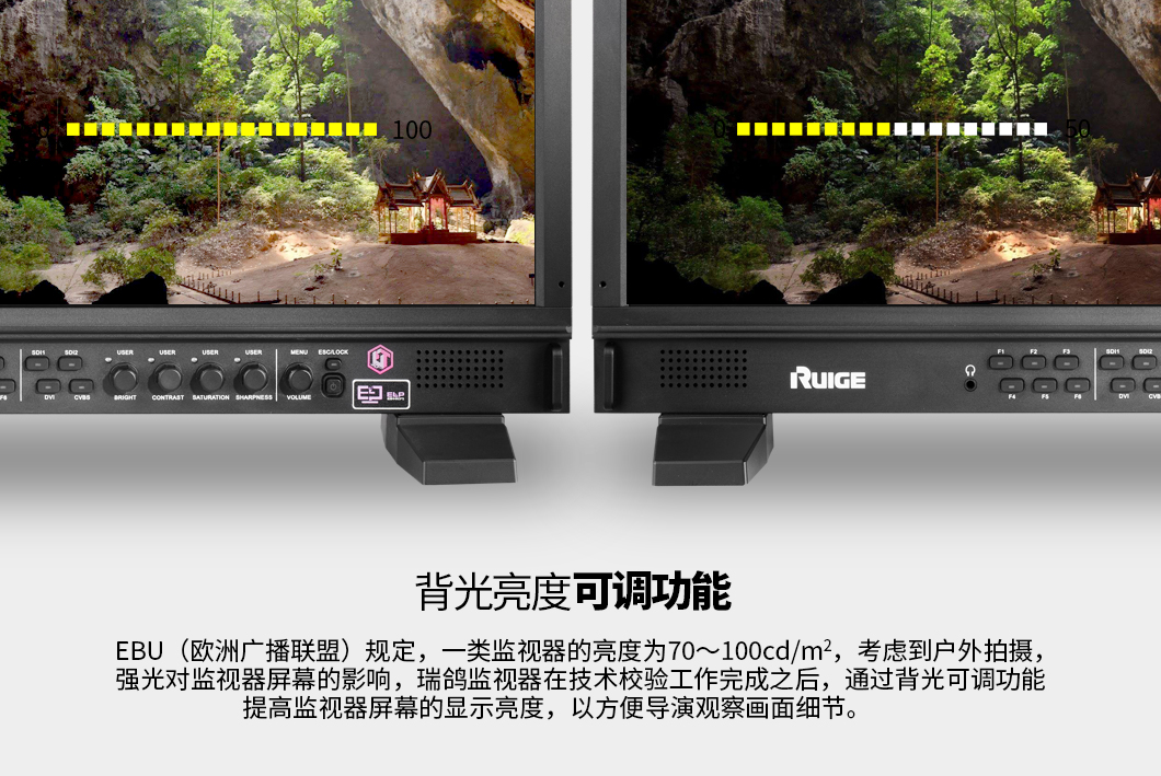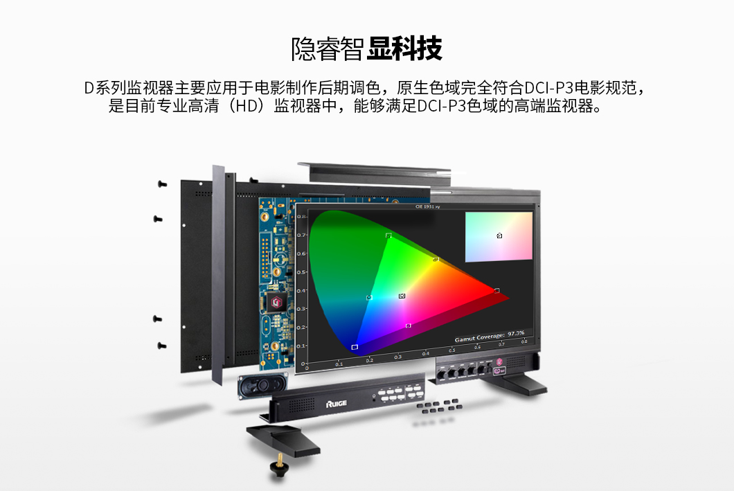 监视器内置3D-LUT色彩管理系统,遵循行业统一的色彩标准,采用专业的检测设备,对监视器进行系统、精确的校准,使监视器的显色指标符合色域规范的容差范围,从而确保了监视器准确的色彩还原,同时最大程度保证了同型号监视器色彩呈现的一致性。